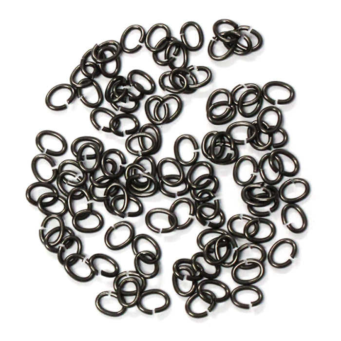 Black Finish Medium Oval Jump Rings / 100 Pack / 3x4mm ID / 20 Gauge / Sawcut / Open / Plated Brass