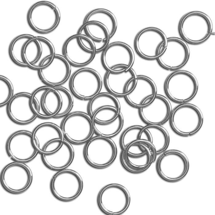 Bright Rhodium 8mm ID Round Jump Rings / 100 Pack / 18 Gauge Sawcut Open Plated Brass