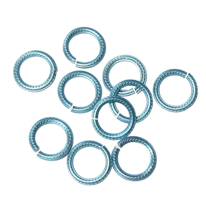 SKY BLUE 10mm Rope Jump Rings / 25 Pack / sawcut round open anodized aluminum
