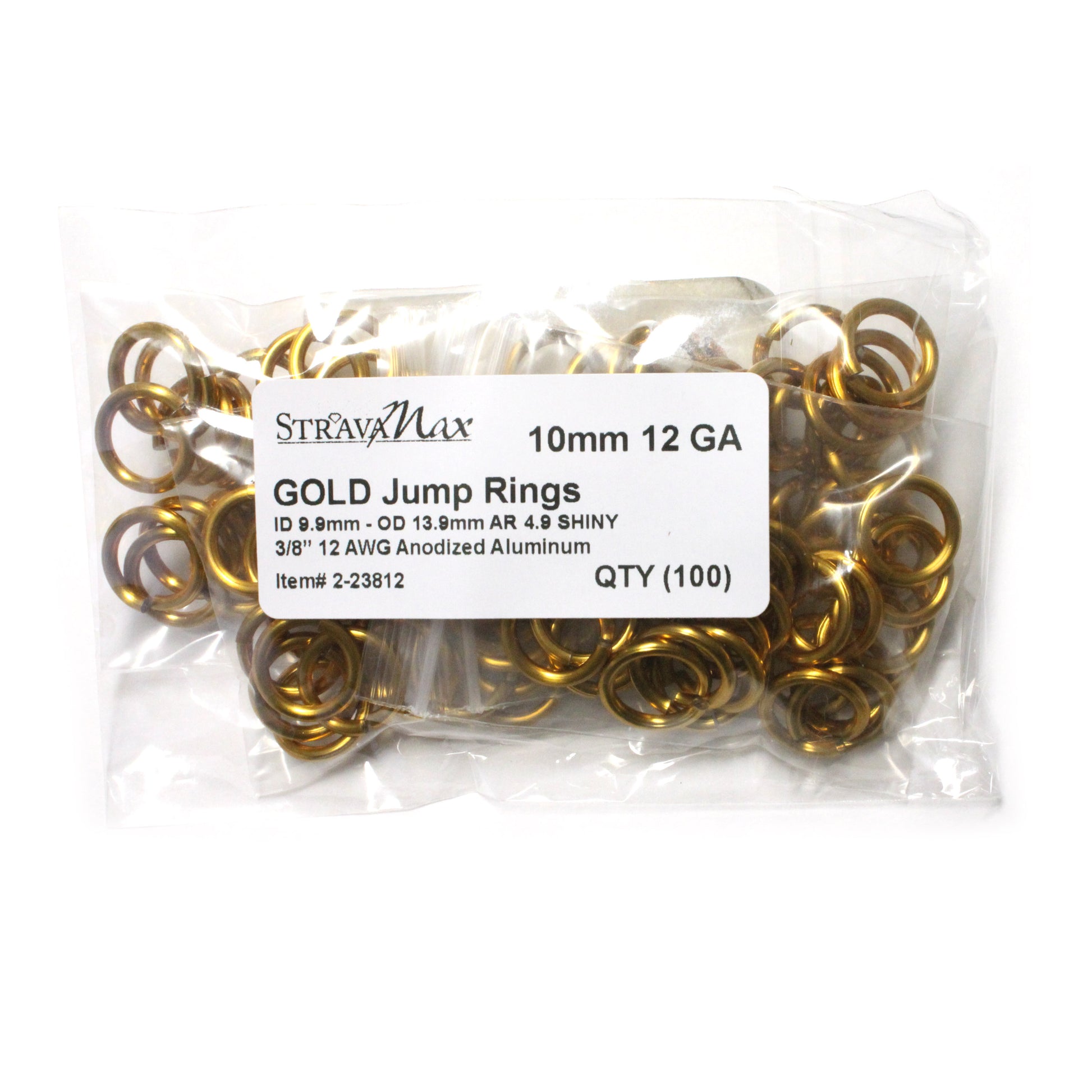 SHINY GOLD 10mm 12 GA Jump Rings / sawcut round open anodized aluminum