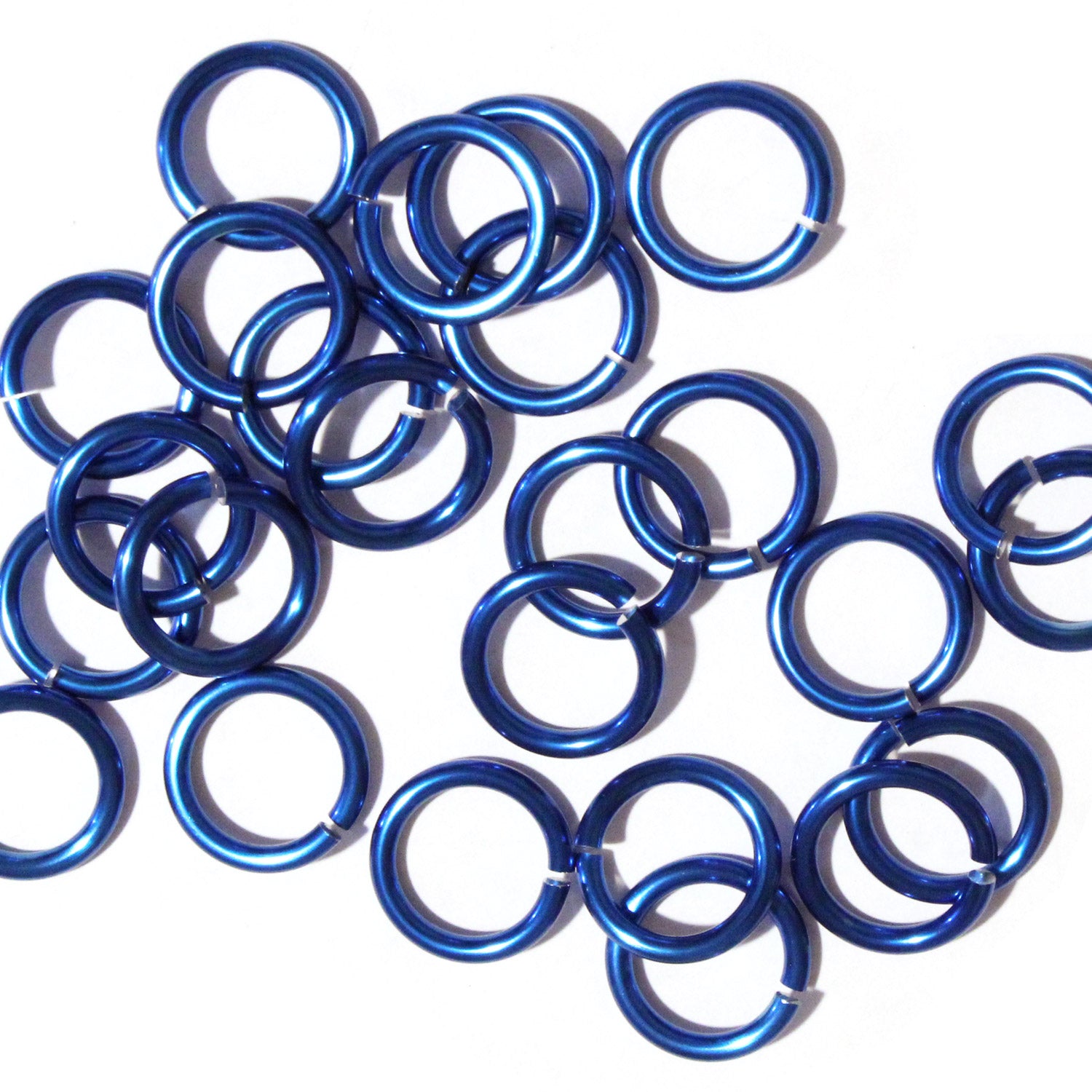 SHINY ROYAL BLUE 10mm 12 GA Jump Rings / sawcut round open anodized aluminum