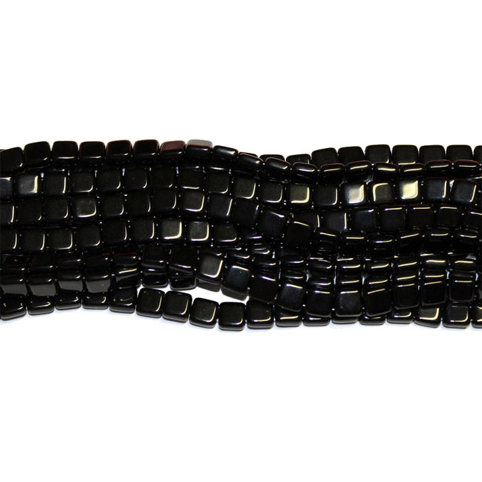 6mm Jet Black / 2 Hole CzechMates Tile Beads / 50 Bead Strand