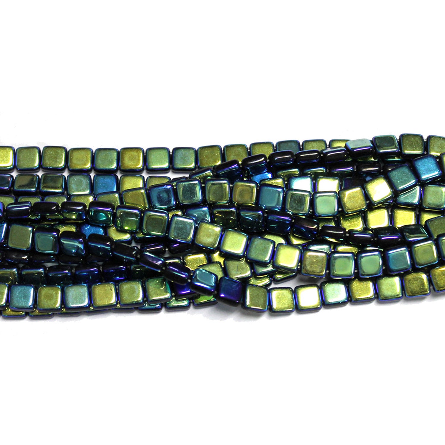 6mm CzechMates Tile Beads are square shaped glass beads that have two parallel 1mm thread holes. These beads are 6mm square and 3mm thick with smooth rounded edges. The thread holes allow various bead stringing and beadweaving techniques not possible with single thread beads. Find these beads in amazing colors including the popular neon colors. Try these unique beads on your next jewelry project.