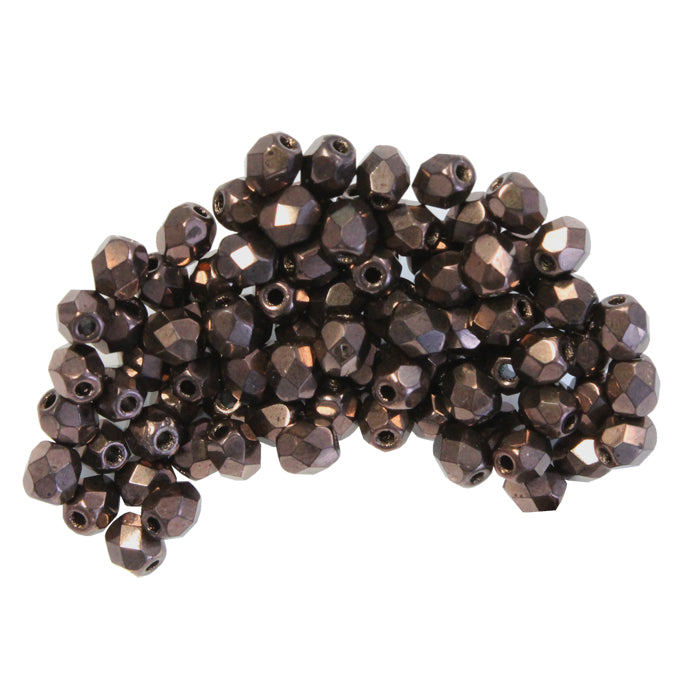 Black Copper Luster Faceted Round Fire Polished Beads