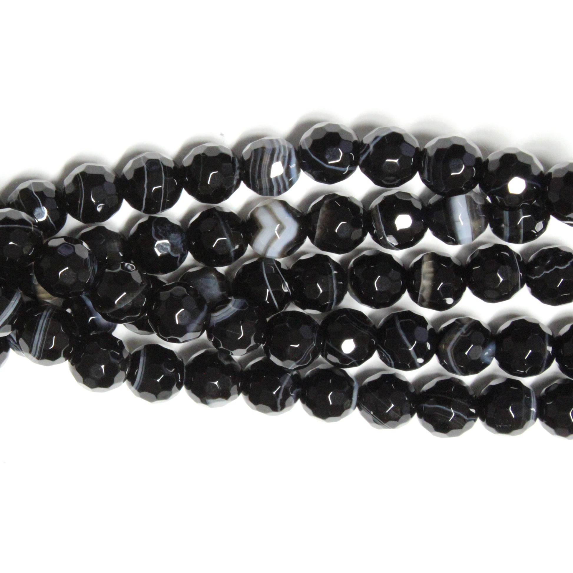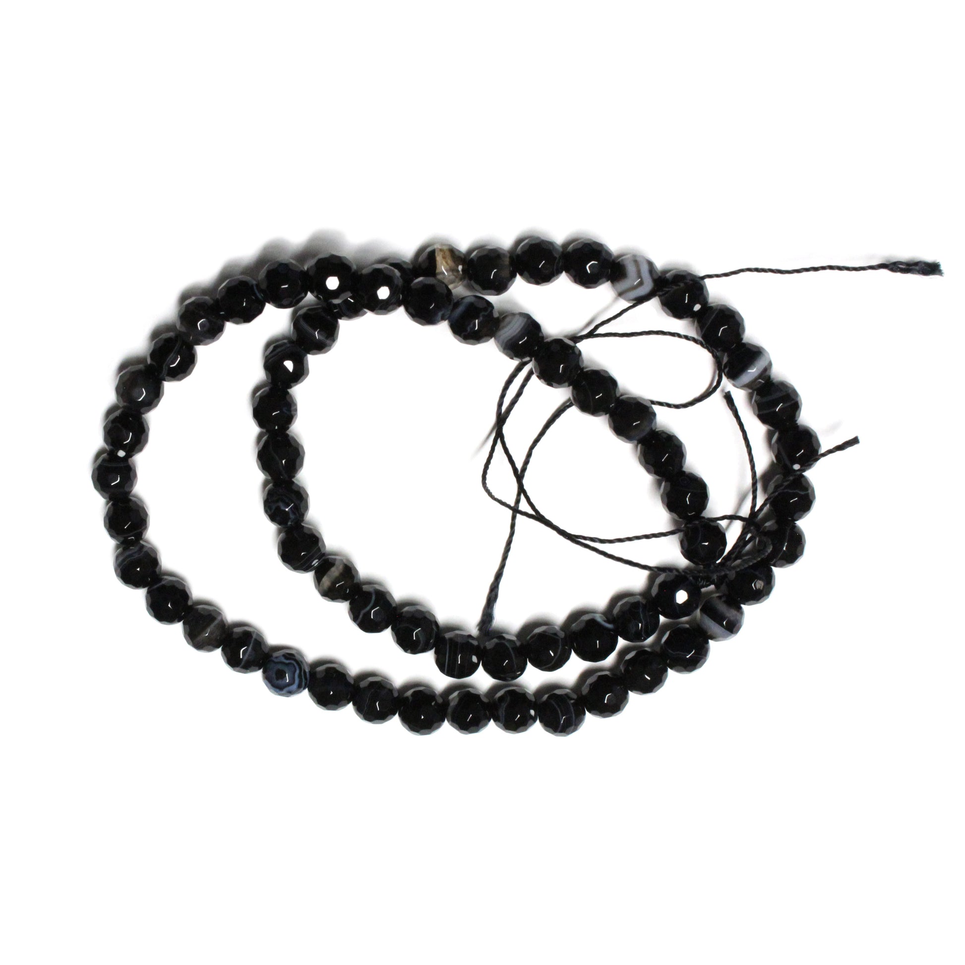 6mm Faceted Sardonyx / 15" Strand / black color / round beads