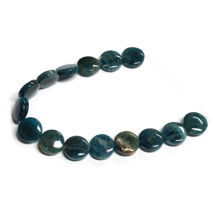 Blue Apatite 12mm Coin Beads / 15 bead strand / translucent peacock lagoon blue semi-precious stone
