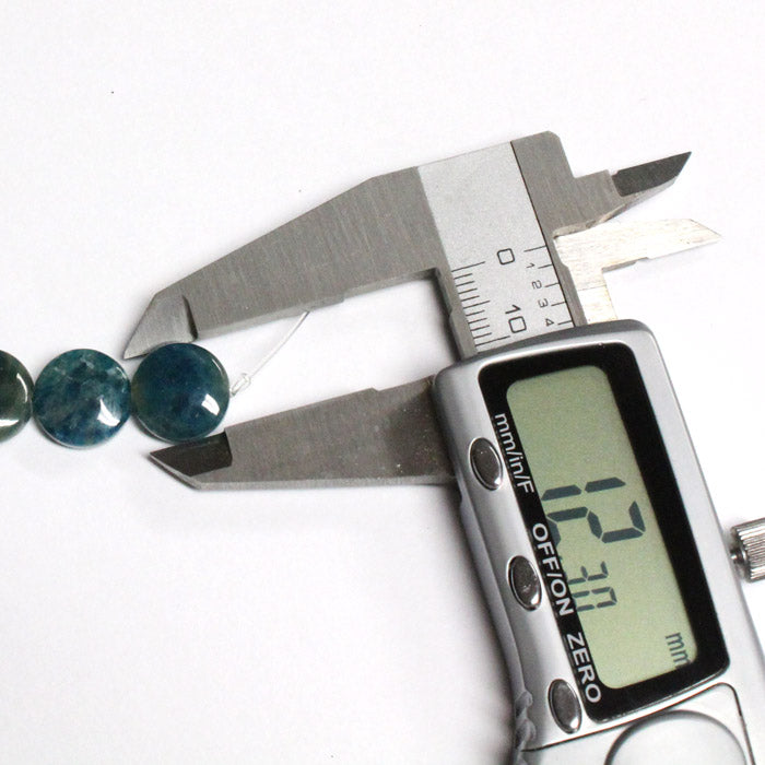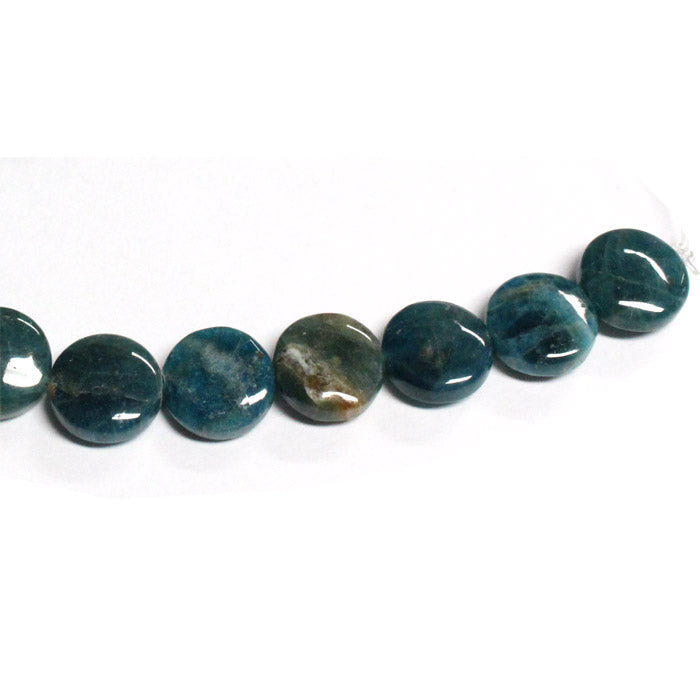 Blue Apatite Coin Bead is a bead with a rounded coin shape. Each bead is 12mm diameter and 5mm thick. Apatite is a gemstone that is a beautiful lagoon blue with a translucence quality meaning that diffused light can pass through the stone. Try stringing these beads onto your next bracelet, earrings or necklace project.