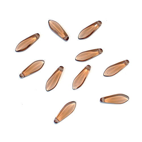 Smoked Topaz Clear Dagger Beads / 25 Pack / 15 x 6mm Czech glass jewelry beads