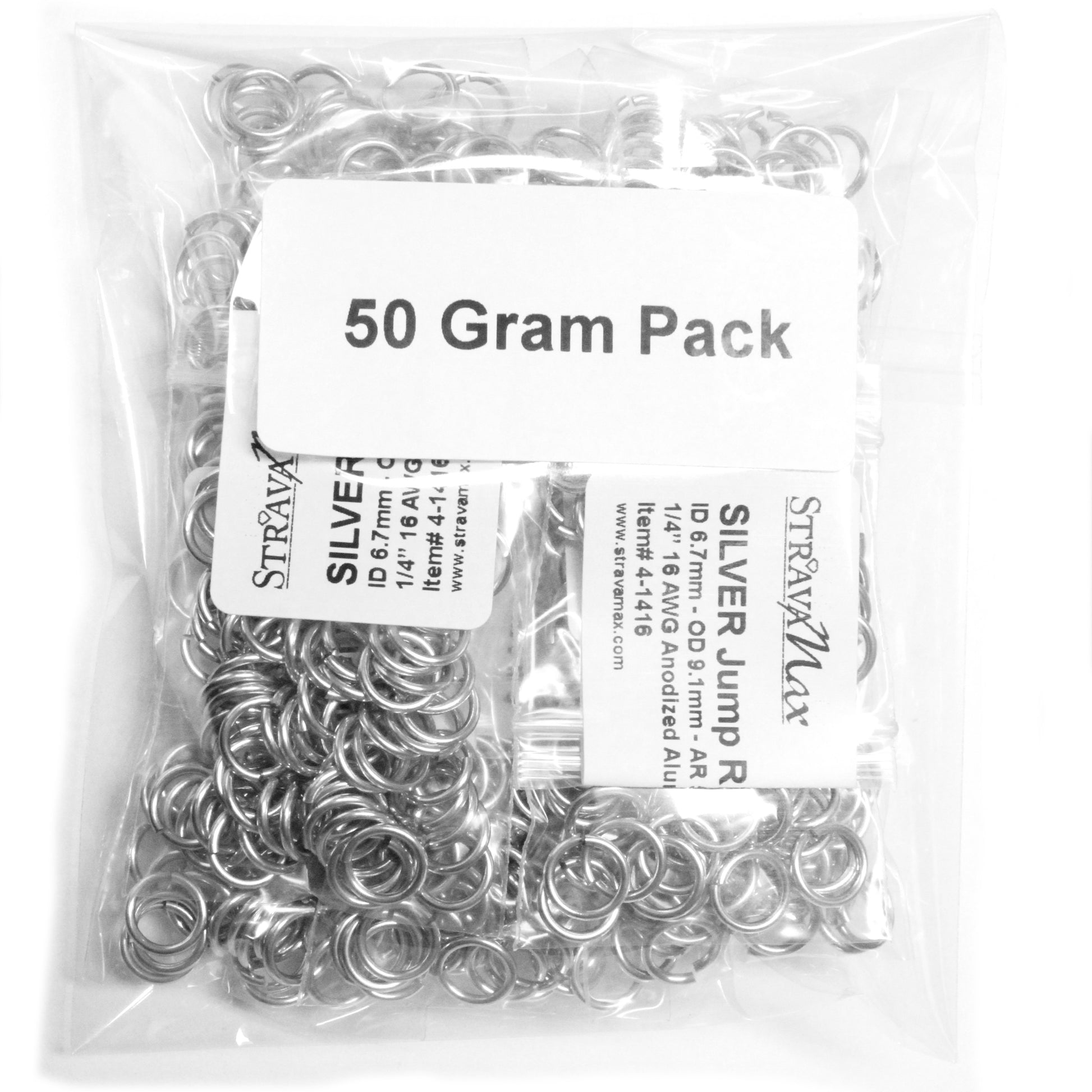 SHINY SILVER 7mm 16 GA AWG Jump Rings / 50 Gram Pack / sawcut round open anodized aluminum / for chainmail jewelry