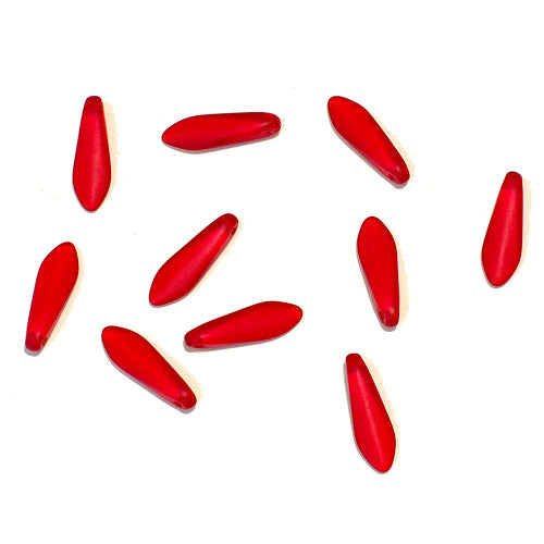 Siam Ruby Matte Dagger Beads / 25 Pack / 15 x 6mm Czech glass jewelry beads