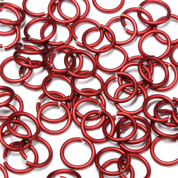 MATTE RED 7mm 16 GA AWG Jump Rings / 5 Gram Pack (approx 70) / sawcut round open anodized aluminum