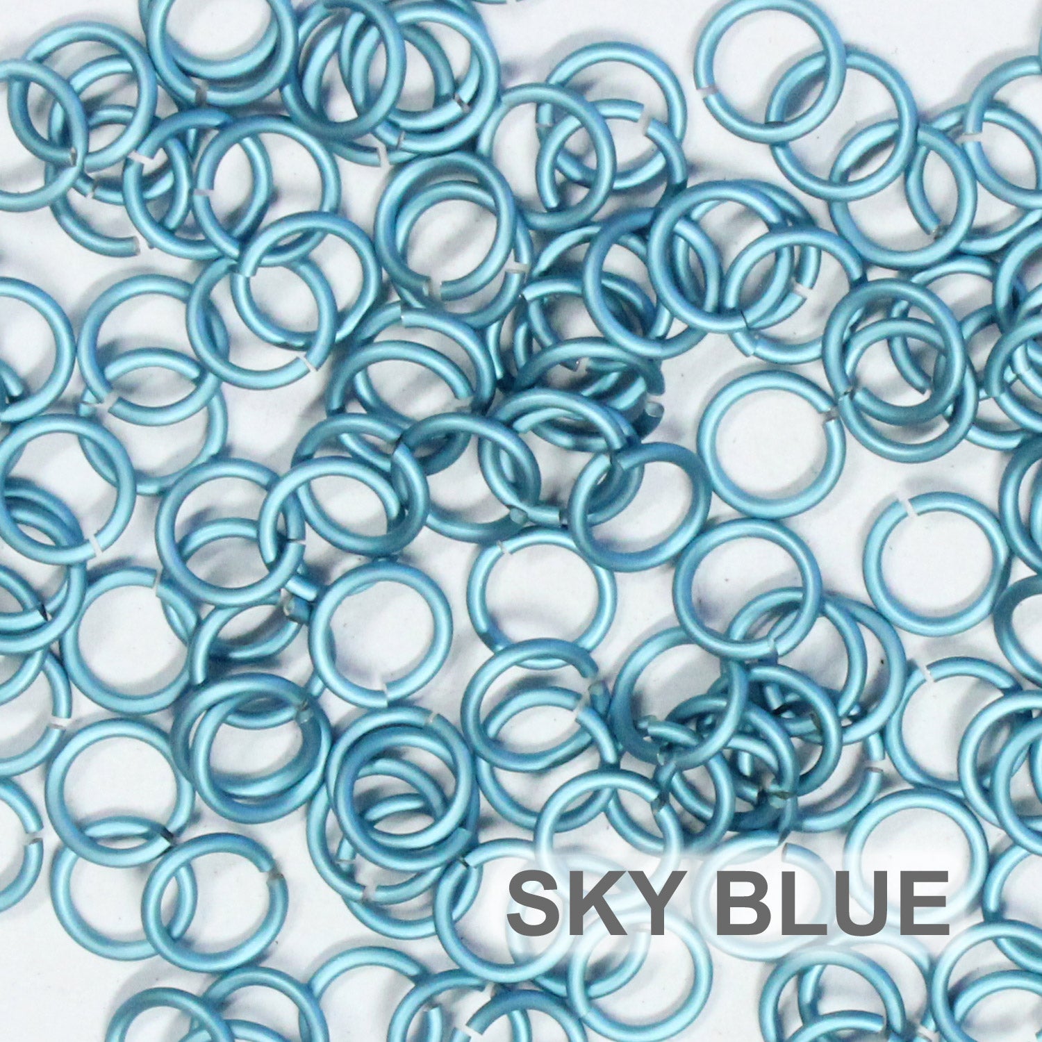 MATTE SKY BLUE 5mm 18 GA Jump Rings / 5 Gram Pack (approx 130) / sawcut round open anodized aluminum