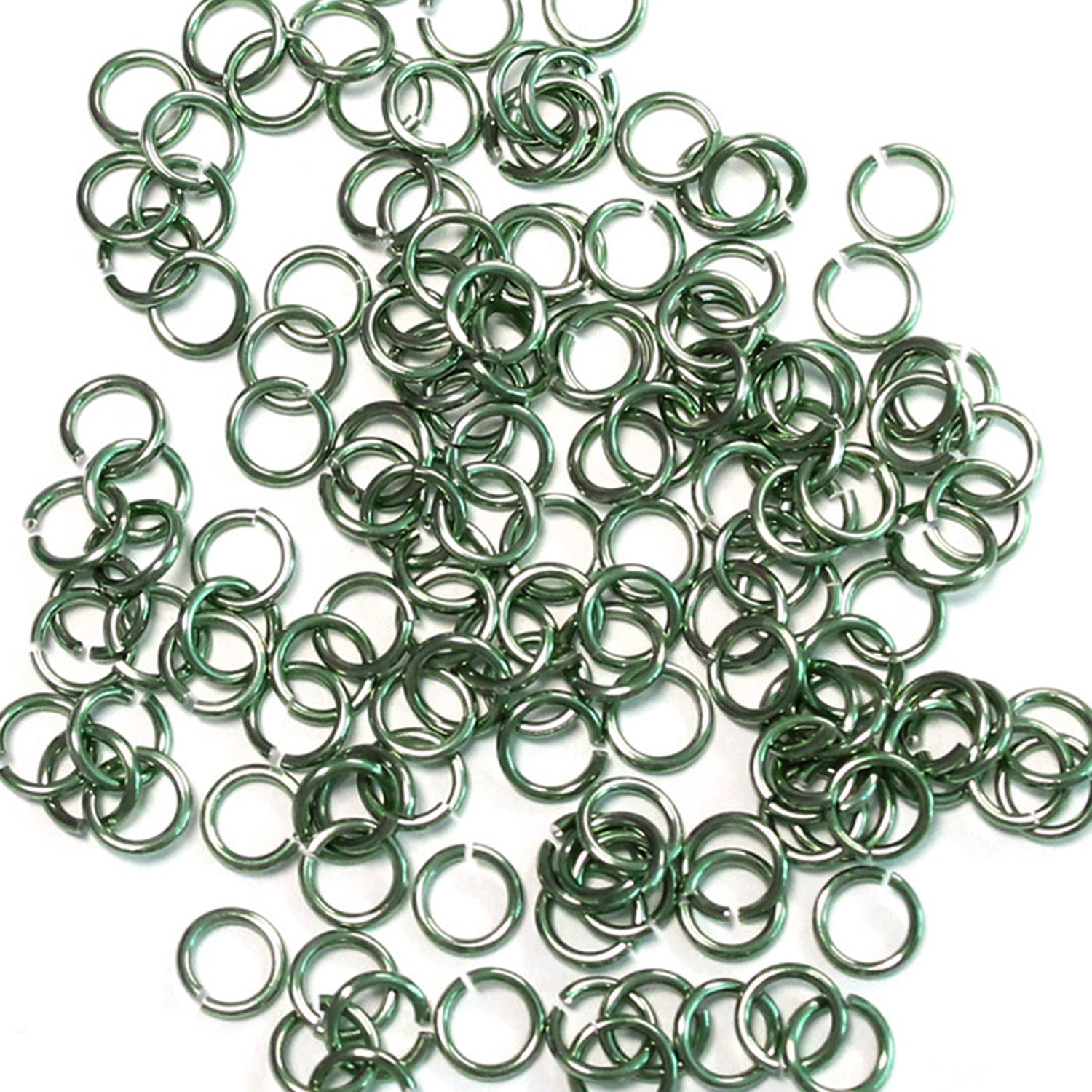 SHINY DARK SEAFOAM GREEN 3.4mm 20 GA Jump Rings / 5 Gram Pack (approx 275) / sawcut round open anodized aluminum
