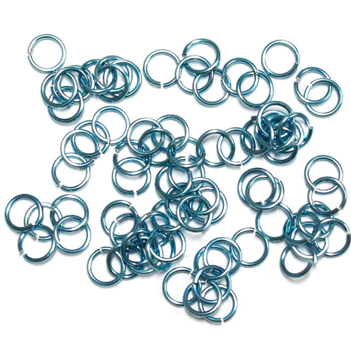 SHINY SKY BLUE 4mm 20 GA Jump Rings / 5 Gram Pack (approx 240) / sawcut round open anodized aluminum