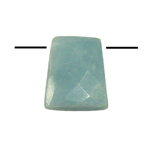 Amazonite Trapezia Pendant is made from natural amazonite and has a faceted trapezoid shape. A side drilled thread hole is located near the top of the pendant. The pendant is 32mm high, 20mm wide at the top and 24mm wide at the base. The pendant is 10mm thick and weighs 12-14 grams. Amazonite is a semi-translucent gemstone that ranges in color from a light mint to aqua-green and is a variety of microline feldspar.