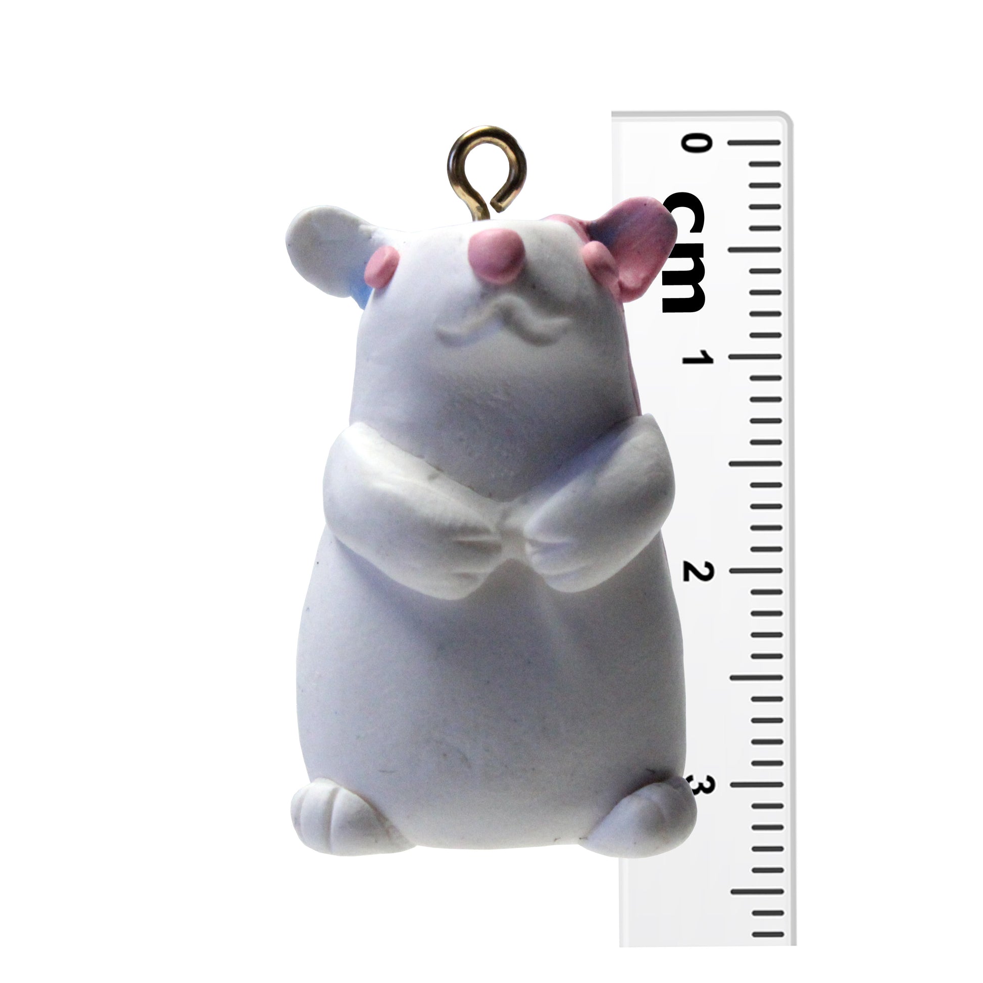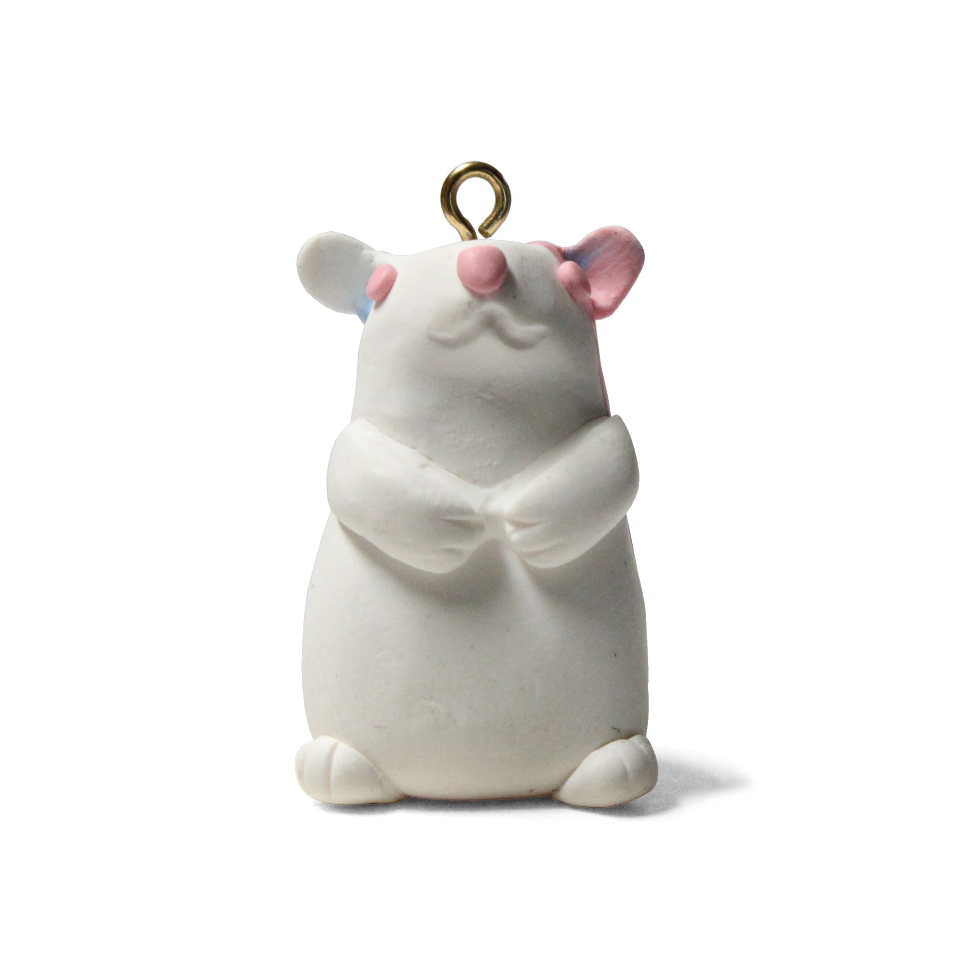 Meet BUBBLEGUM, a cute little hamster charm that eagerly sits and looks up at you with curiosity! Handcrafted with care in a soft white color, complete with adorable pink eyes, ears, and patches. Each charm includes an eyelet for attaching a jump ring - perfect for adding to your necklace, purse, or keychain.