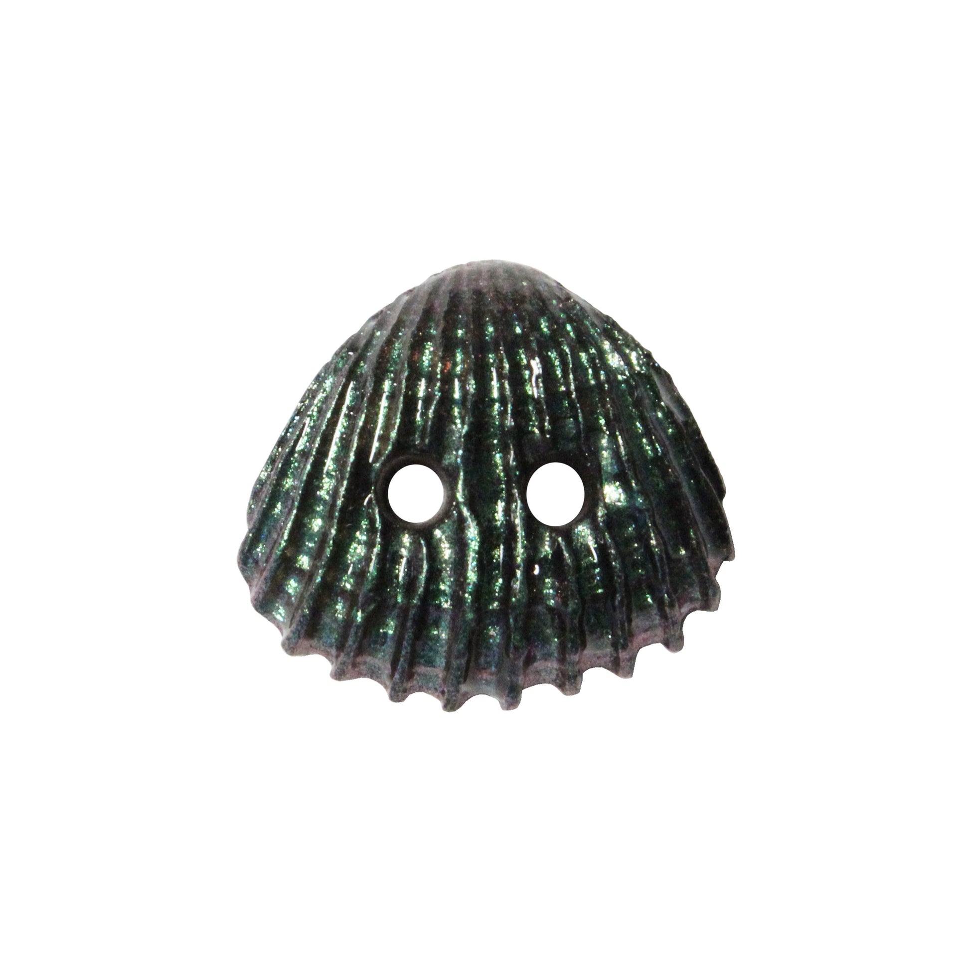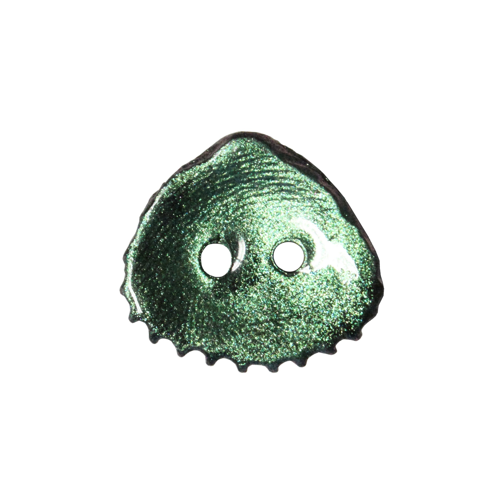 Sea Shell Two Hole Button / iridescent green / 18mm x 20mm / polymer clay / decorative for jewelry