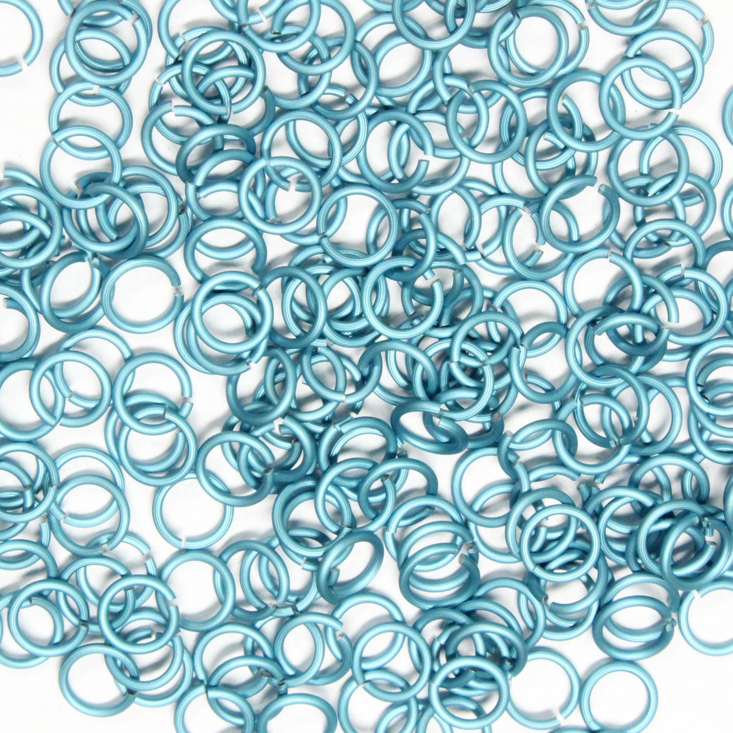 MATTE SKY BLUE 4mm 20 GA Jump Rings / 5 Gram Pack (approx 240) / sawcut round open anodized aluminum