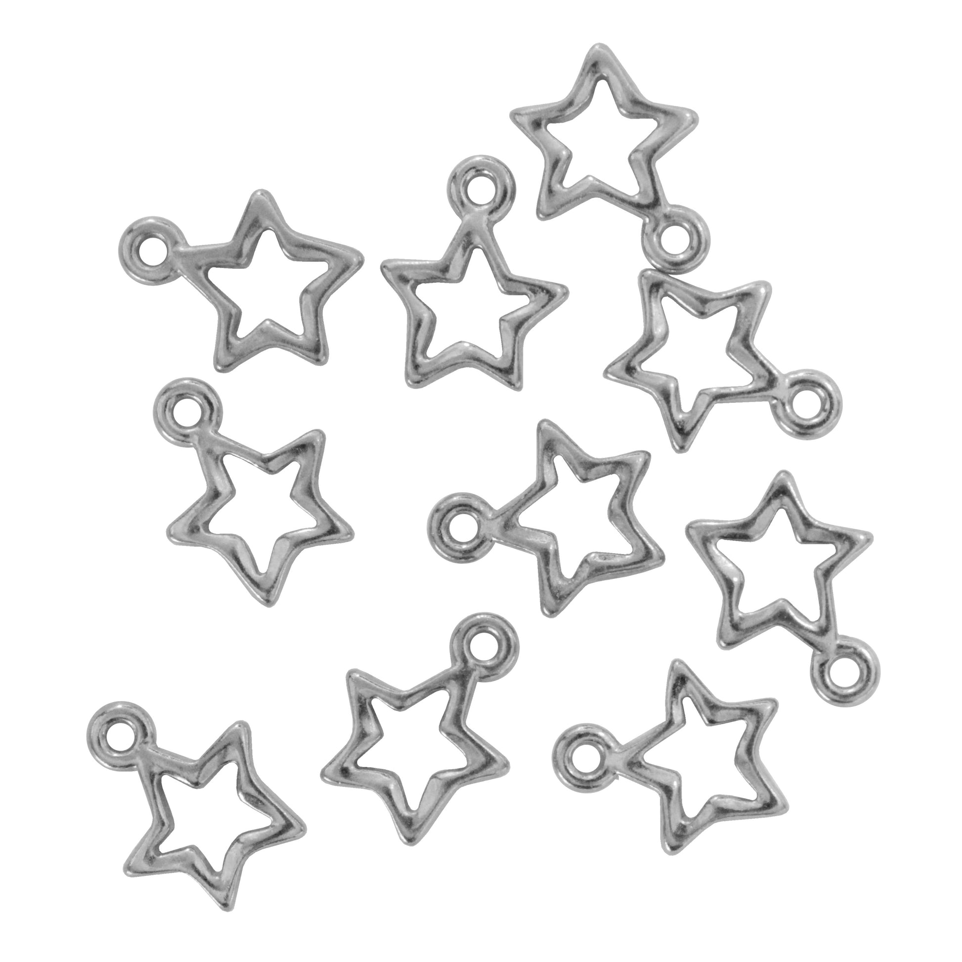 TierraCast Open Star Charm / 10 Pack / plated pewter with a white bronze finish