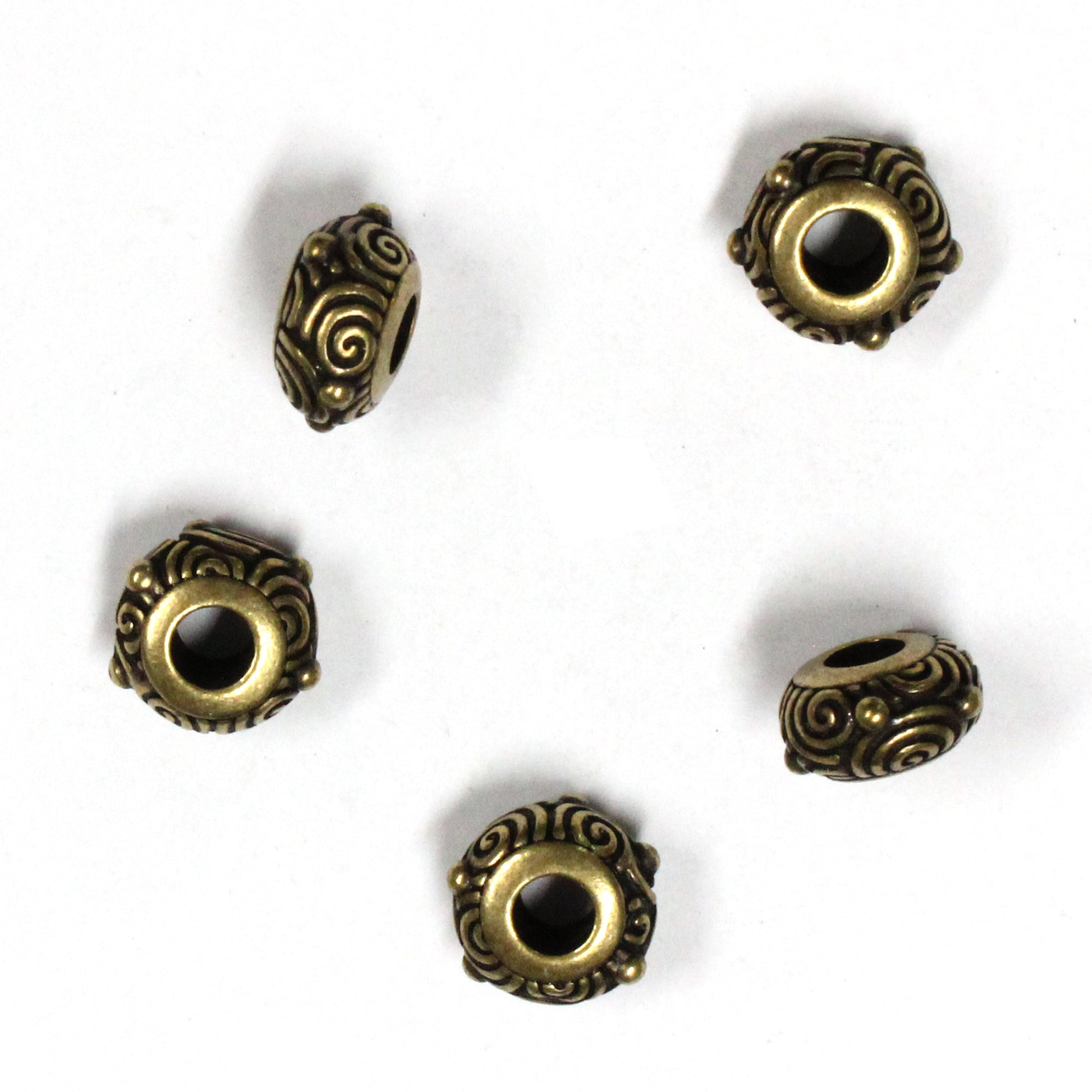 TierraCast Spiral Euro Bead / 5 Pack / pewter with brass oxide finish / large hole bead