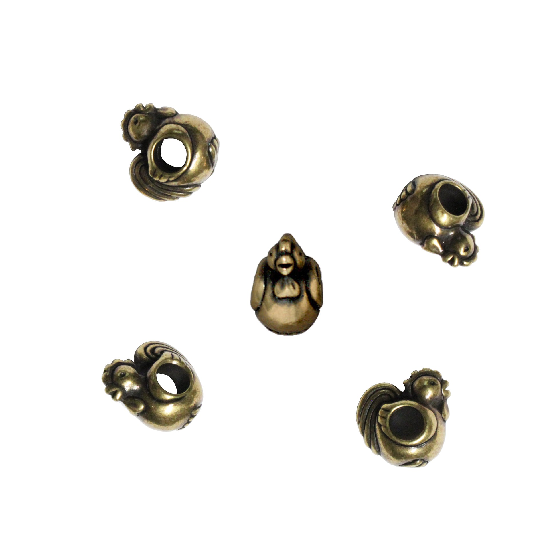 TierraCast Rooster Euro Bead / 5 Pack / pewter with a brass oxide finish / large hole bead