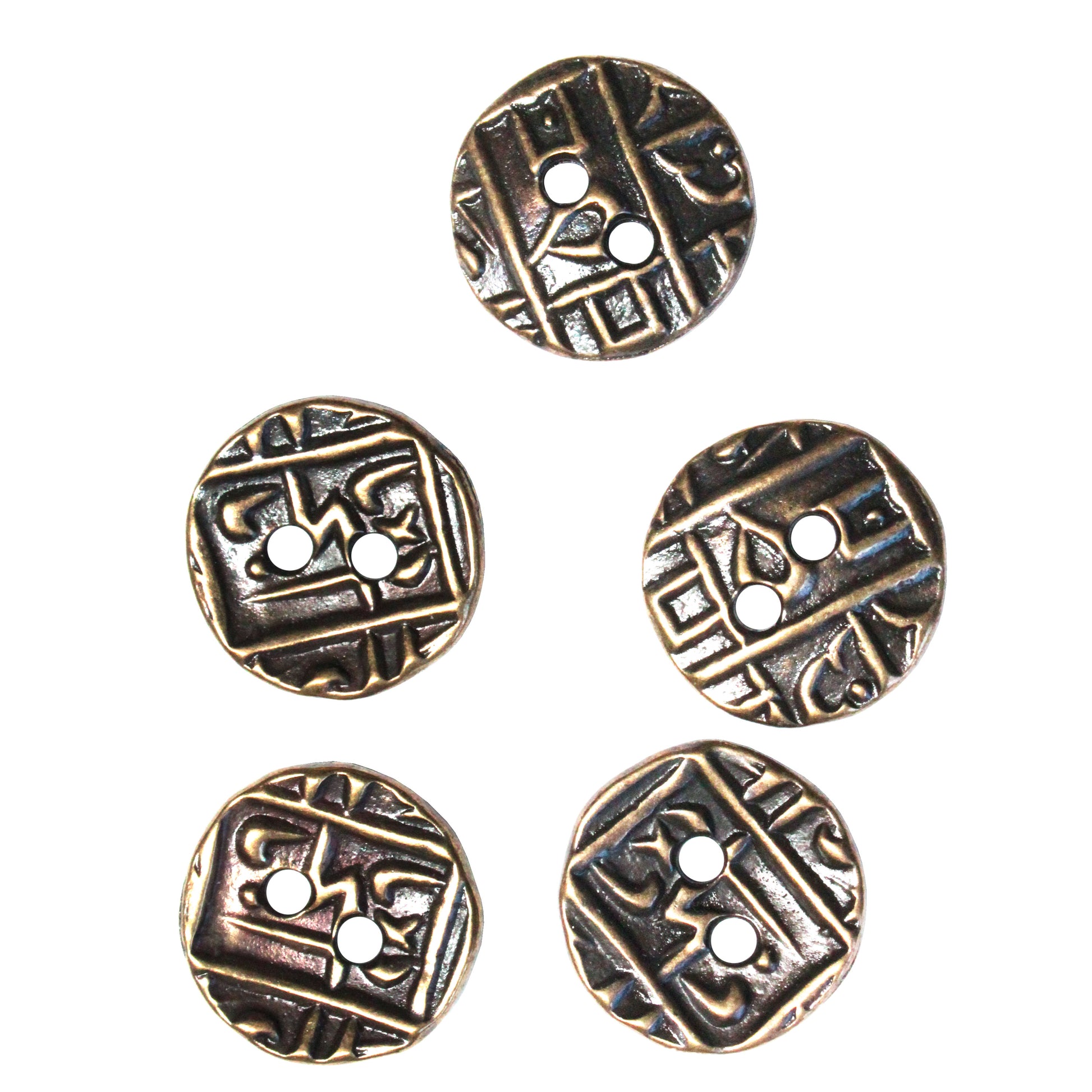 TierraCast Round Coin Button / 5 Pack / pewter with a brass oxide finish
