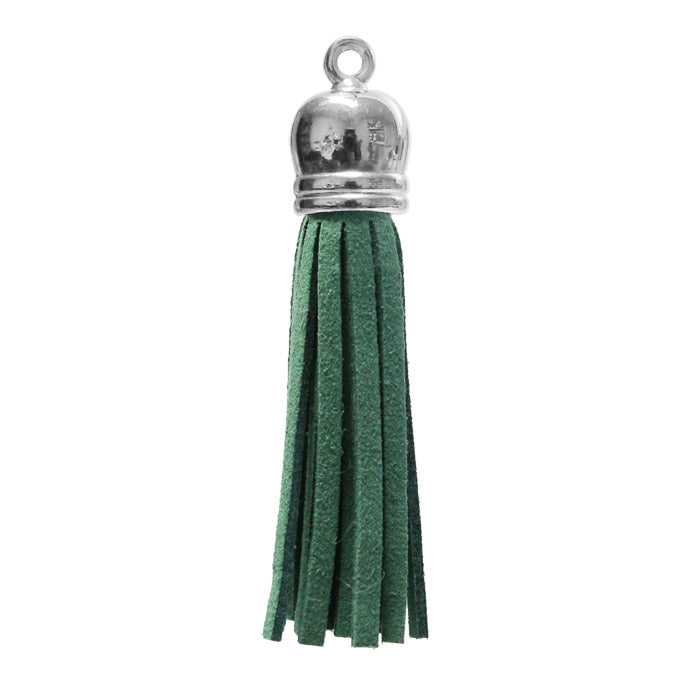 GREEN 60mm Faux Suede Tassel with silver acrylic cap and eyelet