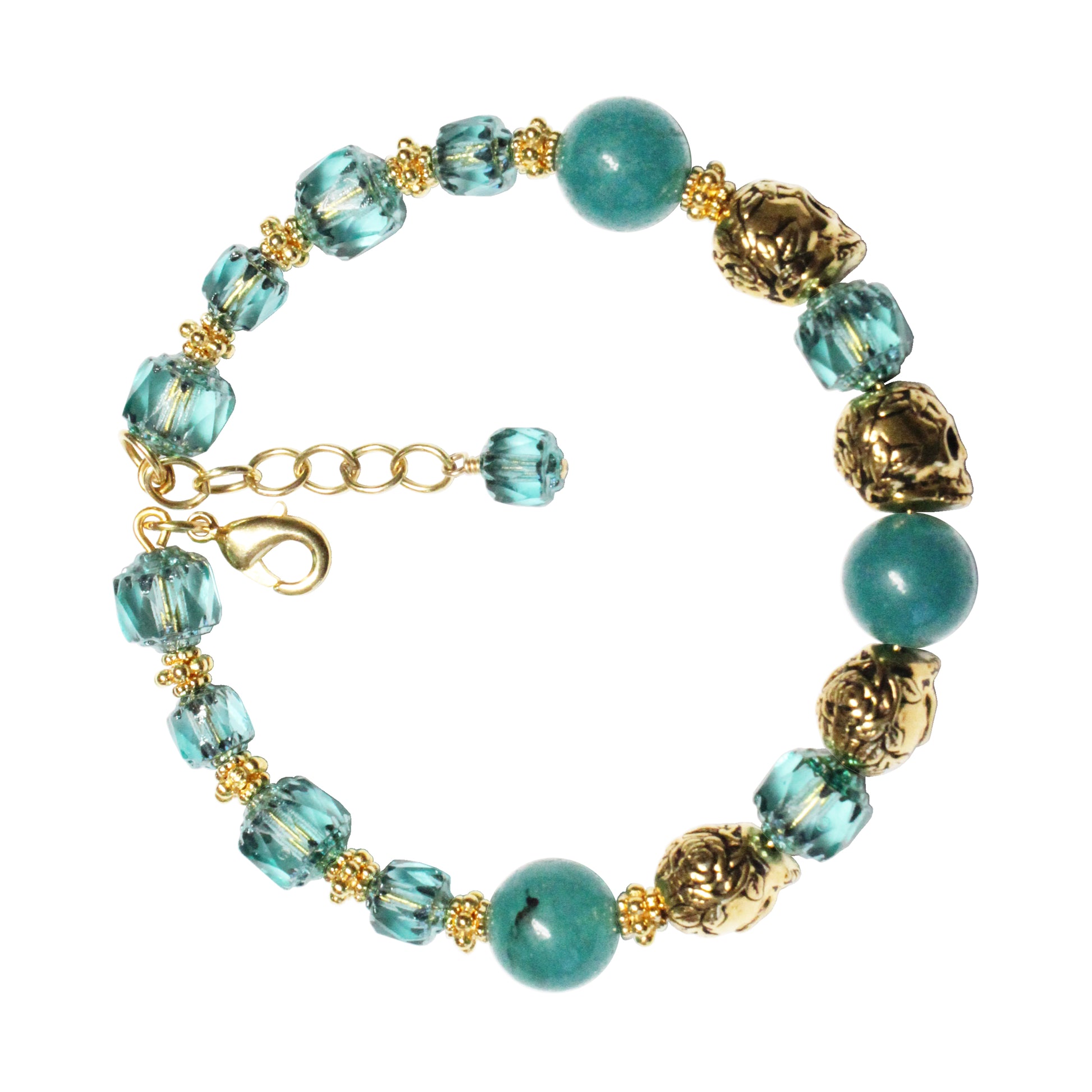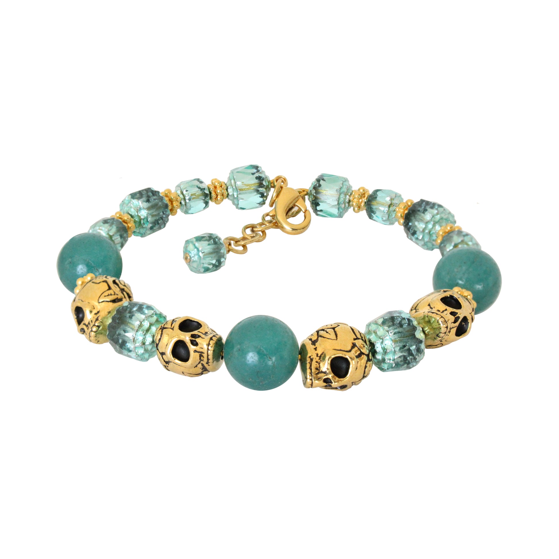 Rose Skull Green Agate Bracelet / 6 to 7.5 Inch wrist size / one inch extender chain