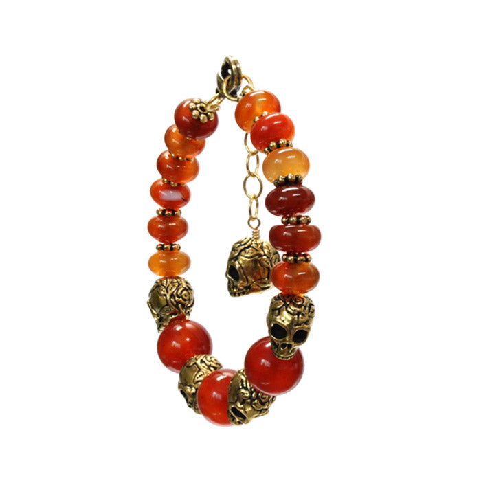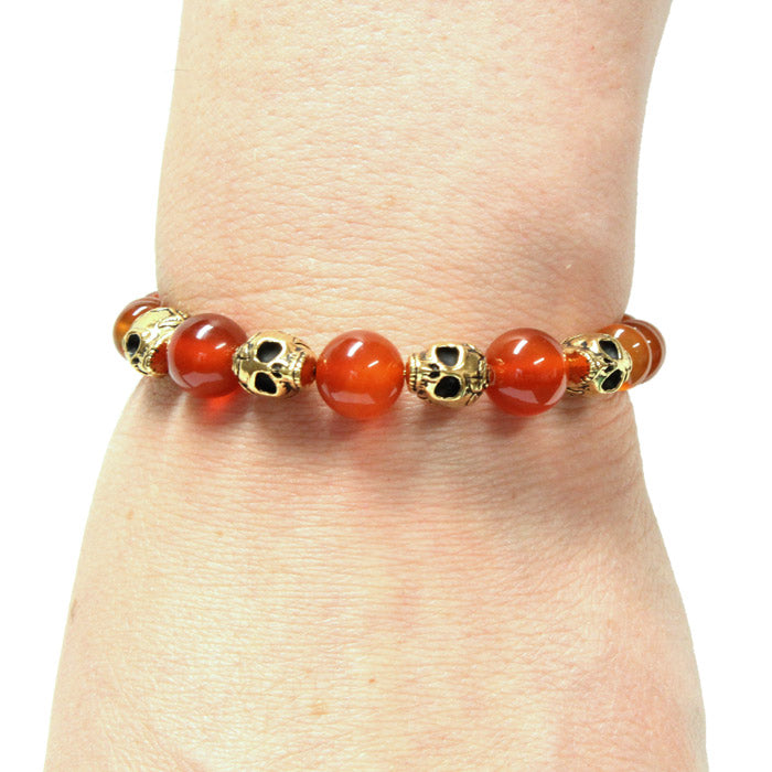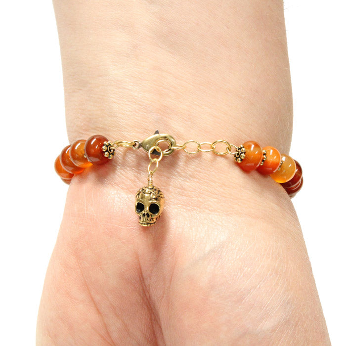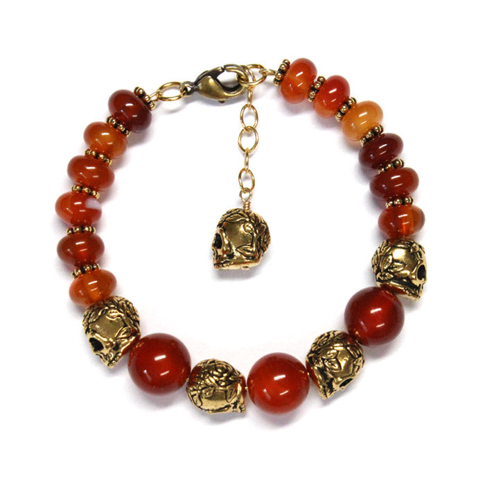 Carnelian Tribal Skull Bracelet – 6 to 7 Inch Wrist - Handmade Gemstone Jewelry