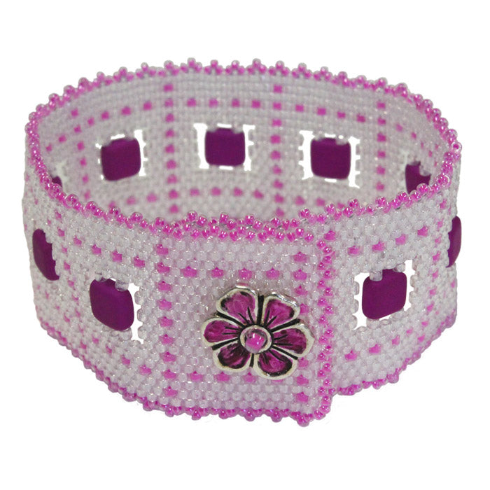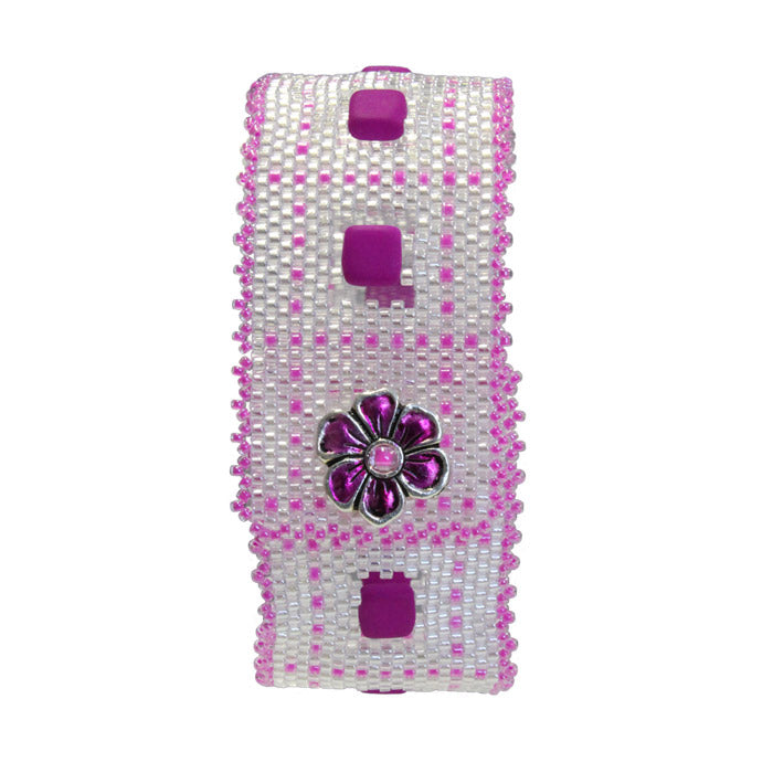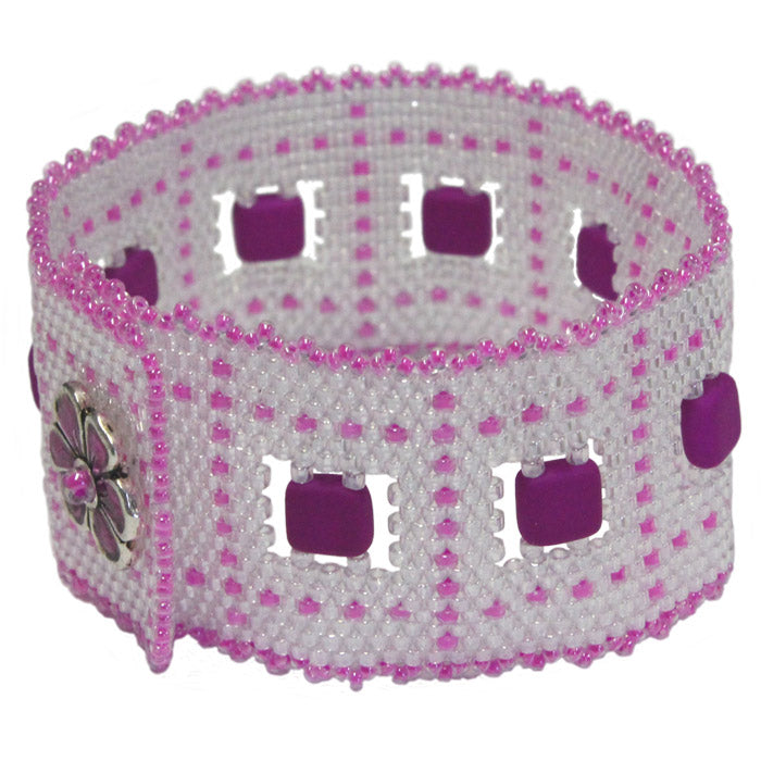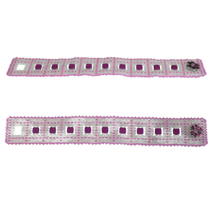 Purple On Ice Peyote Stitch Bracelet / fits 6-1/2 to 6-3/4 Inch wrist / apple blossom button clasp