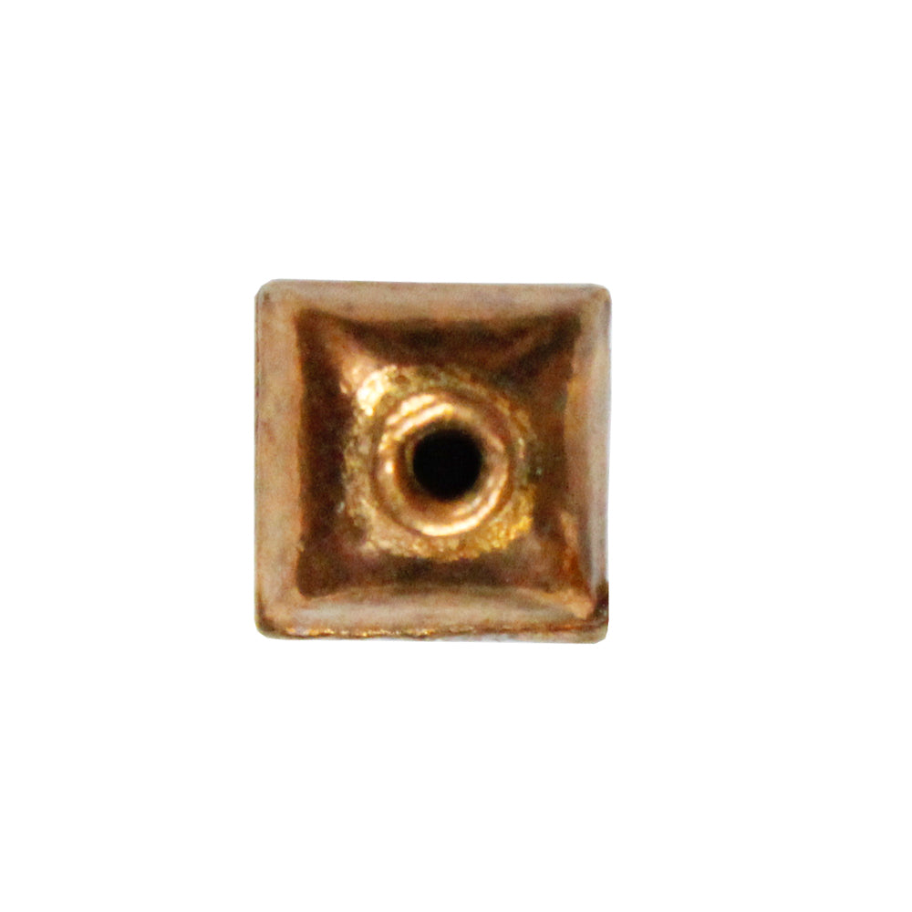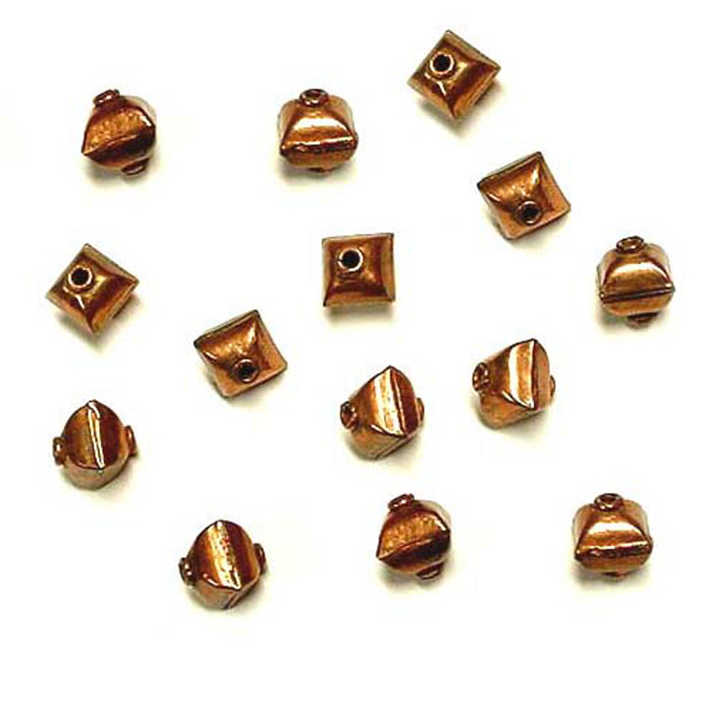 Double Cone Puff Bead is a base metal bead with an antiqued copper finish. Each bead is 9 long x 8mm wide and 8mm thick with a 1.5mm thread hole. This bead is shaped like two square cones turned together with a smooth surface. These beads have a handmade look and feel and would be great on an organic style jewelry or craft project.