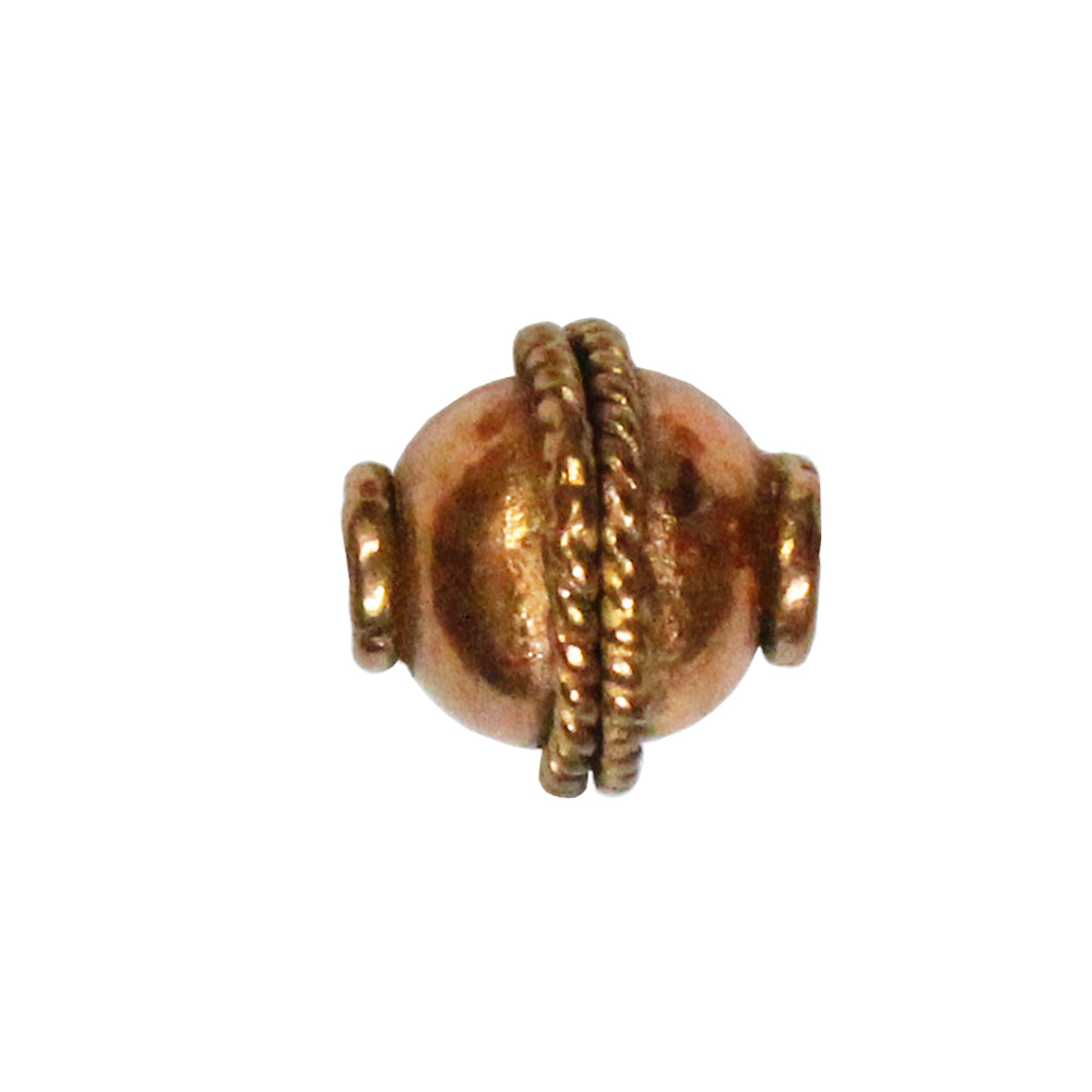 Double Saucer Bead Antique Copper / 10mm diameter / with a rope-like band around the center