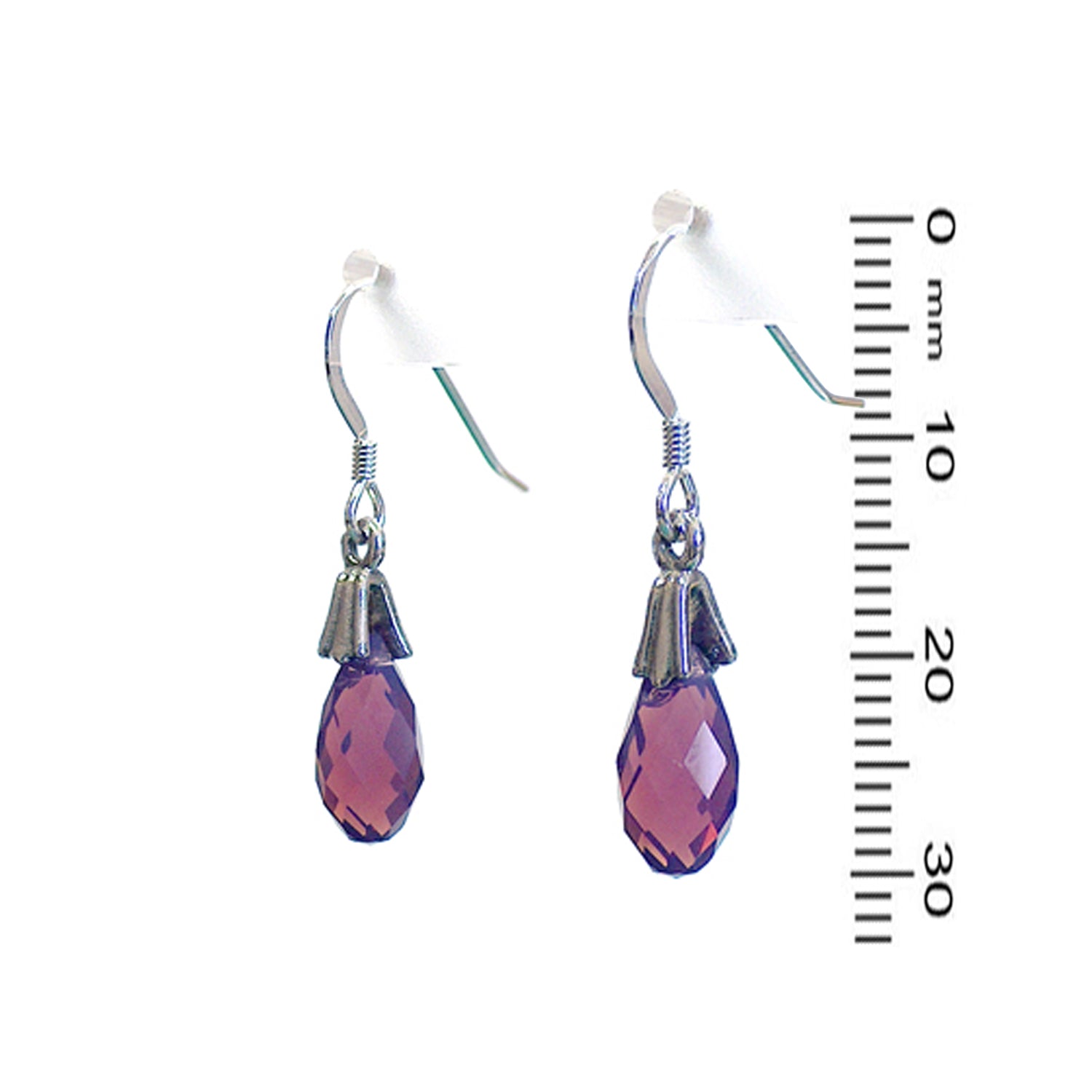 Purple Cyclamen Briolette Earrings / 30mm length / fleur de lis bail / crystal pendant / sterling silver hook earwires