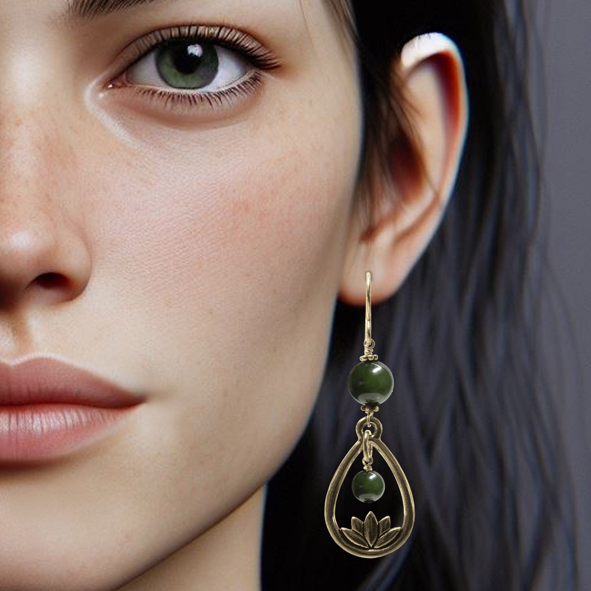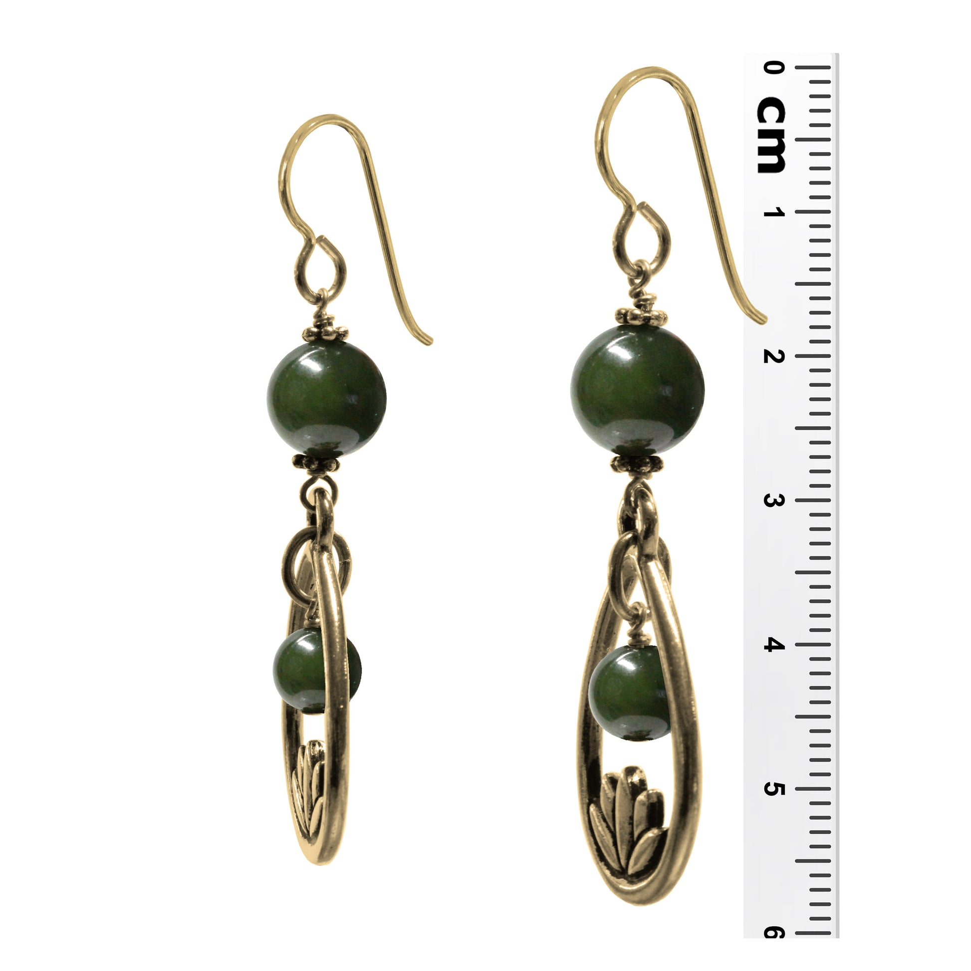 BC Jade Lotus Earrings / 58mm length / gold filled hook earwires