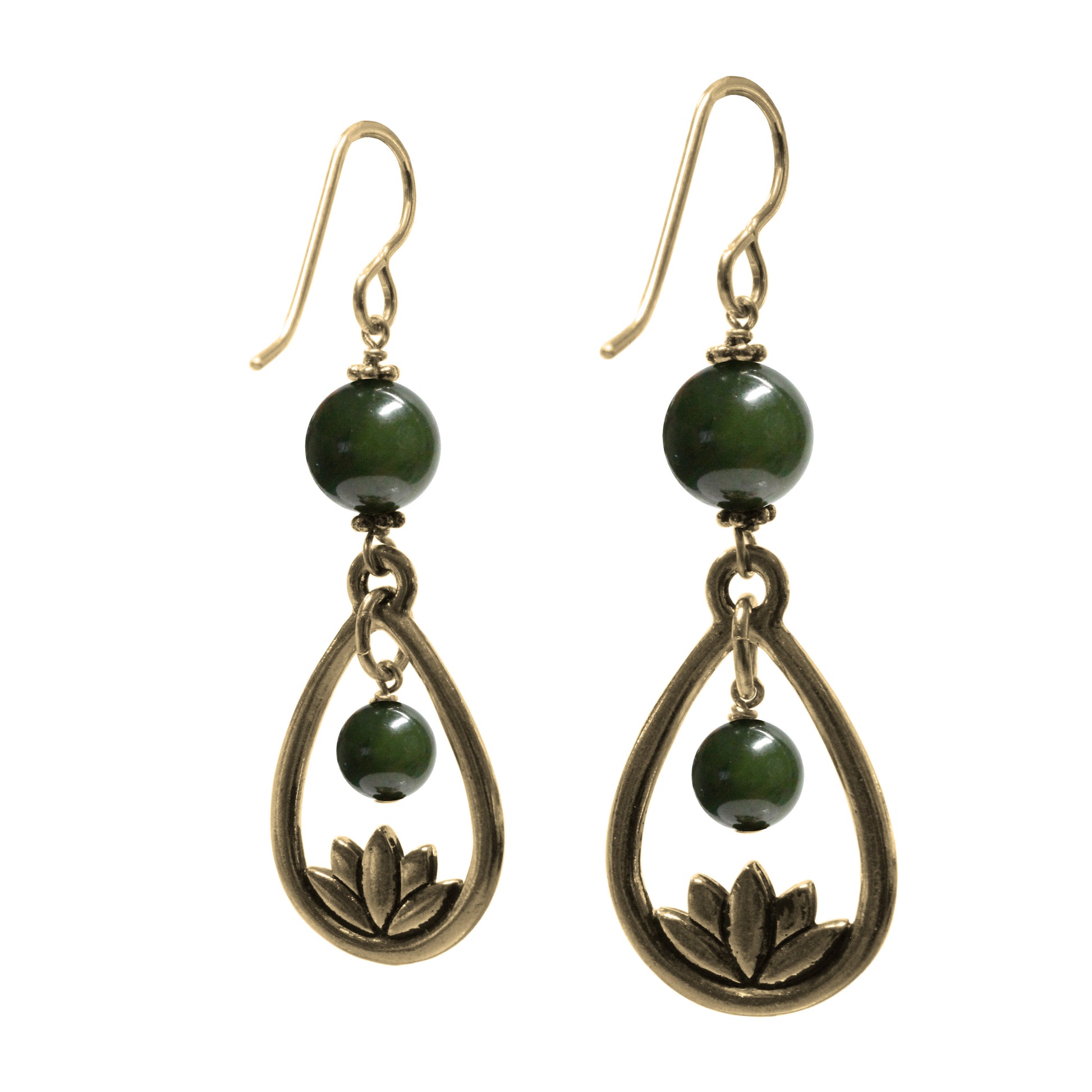 Experience the beauty of BC Jade with our stunning BC Jade Lotus Earrings. Made with genuine BC Jade, these earrings feature layered lotus petals at the base of a graceful teardrop charm. The lotus flower has long been revered as an iconic symbol of beauty and purity. These earrings are gold filled hooks.