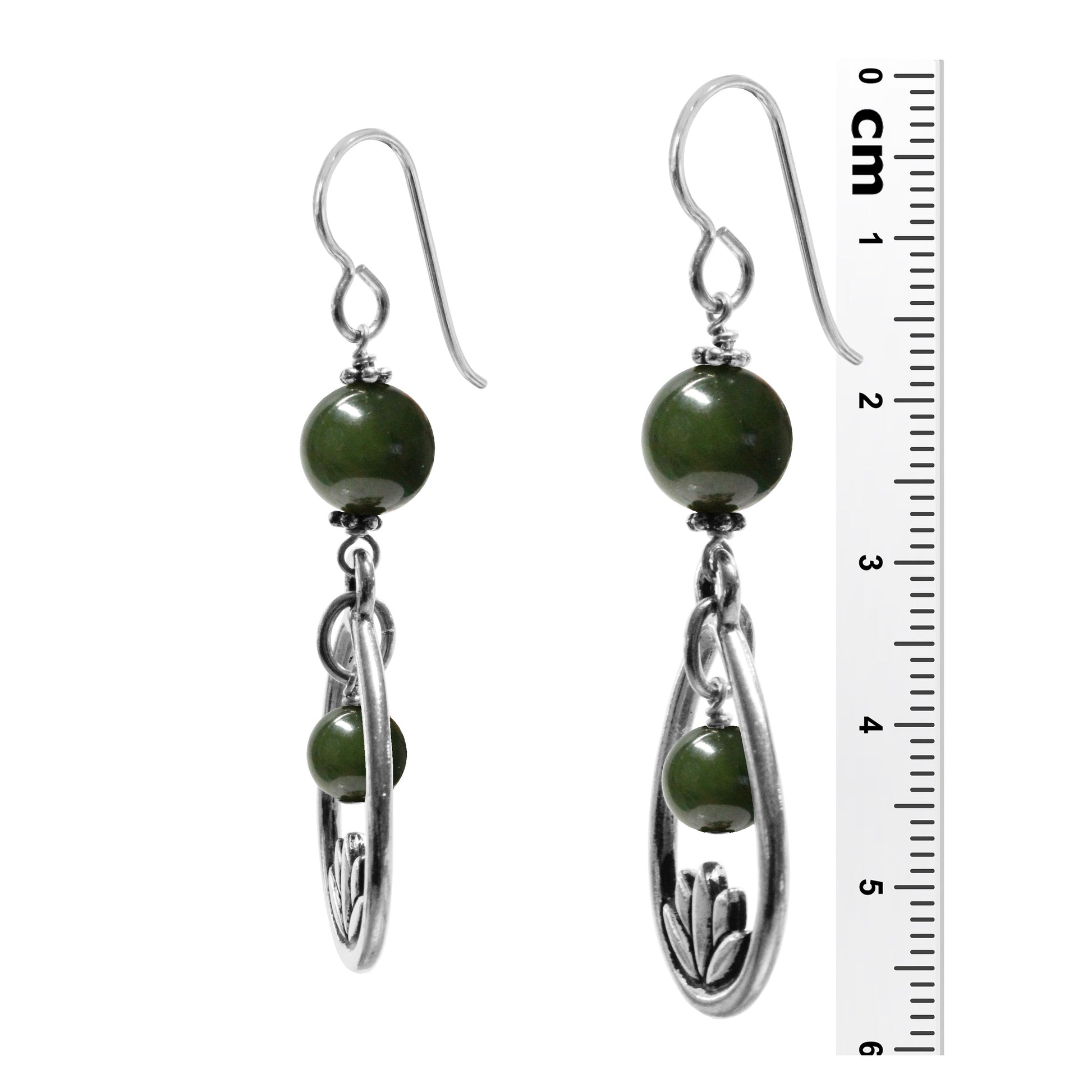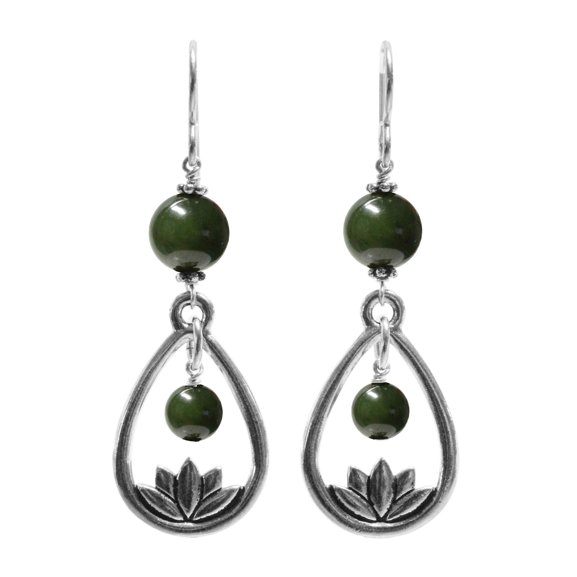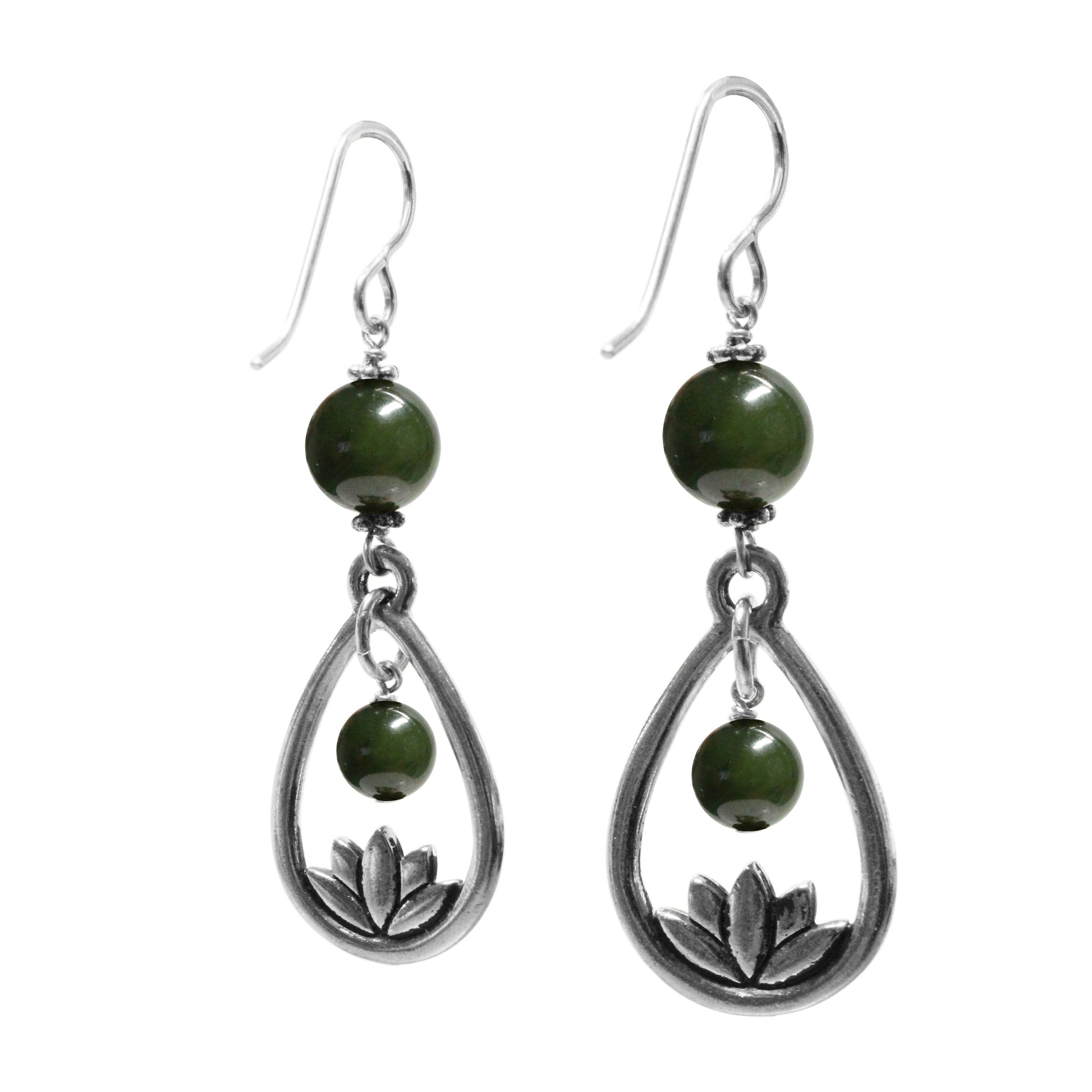BC Jade Lotus Earrings / 58mm length / sterling silver hook earwires