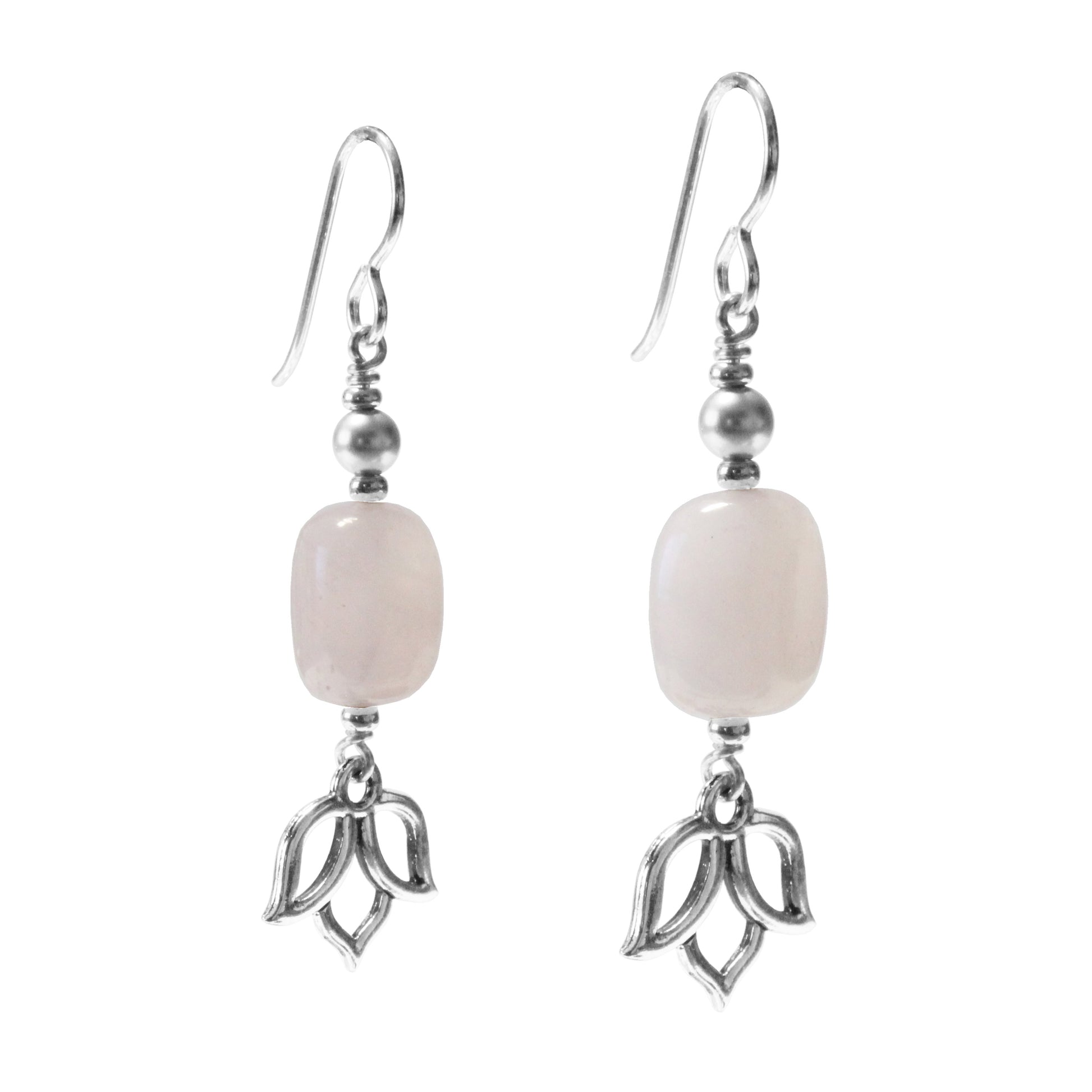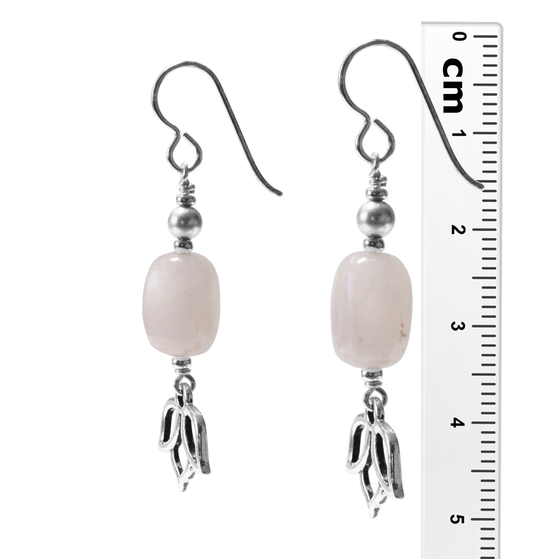 Lotus Earrings with rose quartz / 50mm length / sterling silver earwires