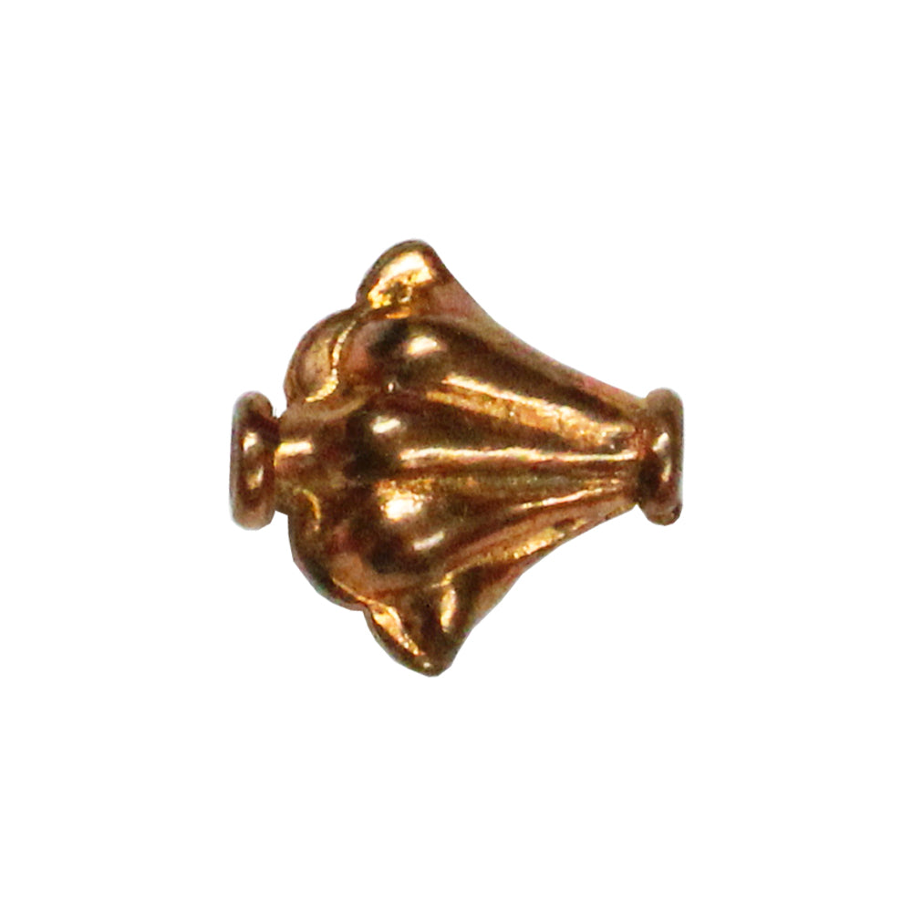 Fan Bead is a base metal bead with an antiqued copper finish. Each bead is 11 long x 11mm wide and 6mm thick with a 1.2mm thread hole. This bead is shaped like a five segmented fan. These beads have a handmade look and feel and would be great on an organic style jewelry or craft project.